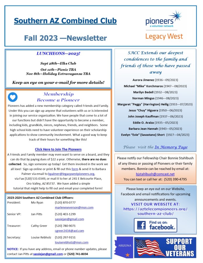 SACC Newsletter – Fall 2023 page 1