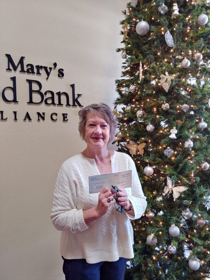 Susan Mack, representative of St. Mary’s Food Bank, accepted a $1000. check from Phoenix Thunderbird Club Pioneers.